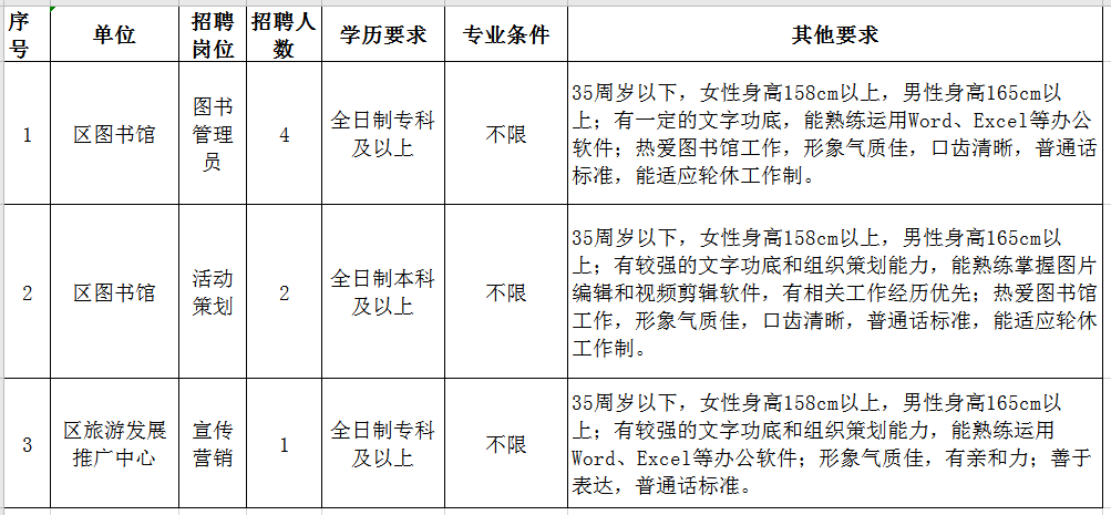 2021-01-21 22:12:55閱讀()重慶公共招聘網(wǎng)根據(jù)工作需要,我公司受重慶市梁平區(qū)文化和旅游發(fā)展委員會(huì)委托面向社會(huì)公開(kāi)招聘7名勞務(wù)派遣人員。具體招聘詳情如下: