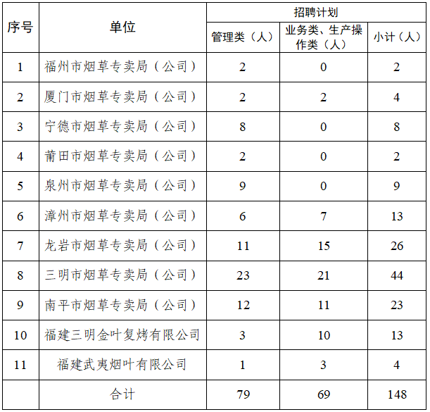 本批次計劃招聘高校畢業(yè)生148人,具體計劃如下: