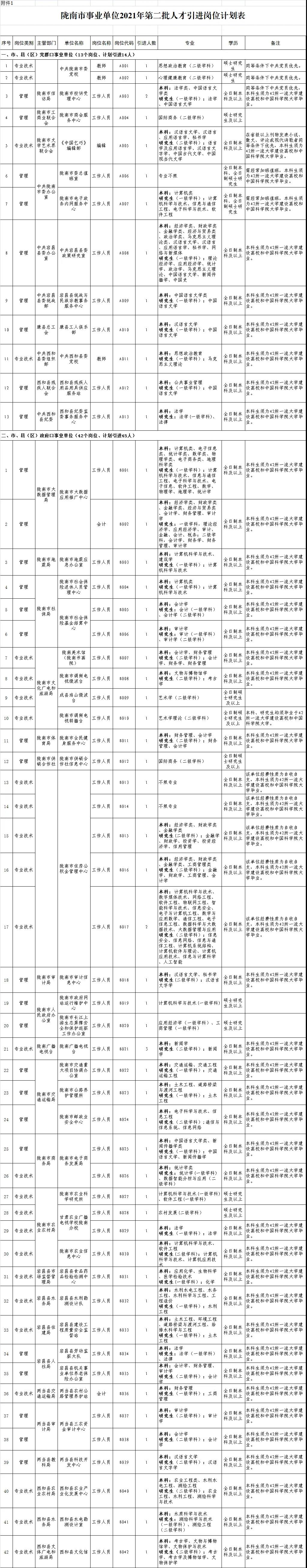 附件:1.隴南市事業(yè)單位2021年第二批人才引進(jìn)崗位計(jì)劃表