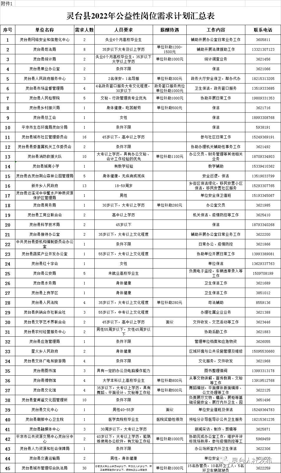 附件:1.靈臺縣2022年公益性崗位需求計劃匯總表