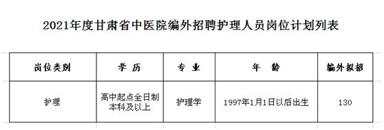6、具備崗位要求的其他條件(見下《2021年度甘肅省中醫(yī)院編外護理招聘人員崗位計劃列表》)。