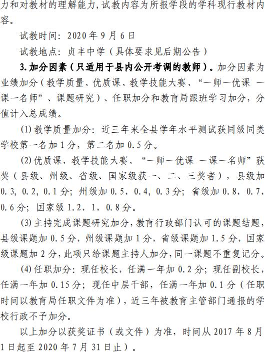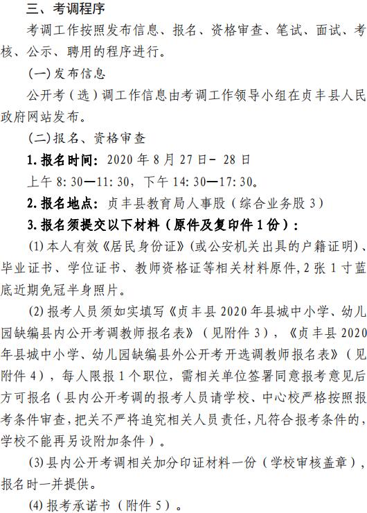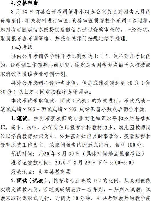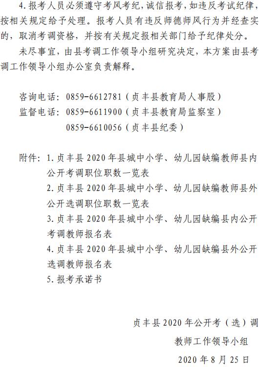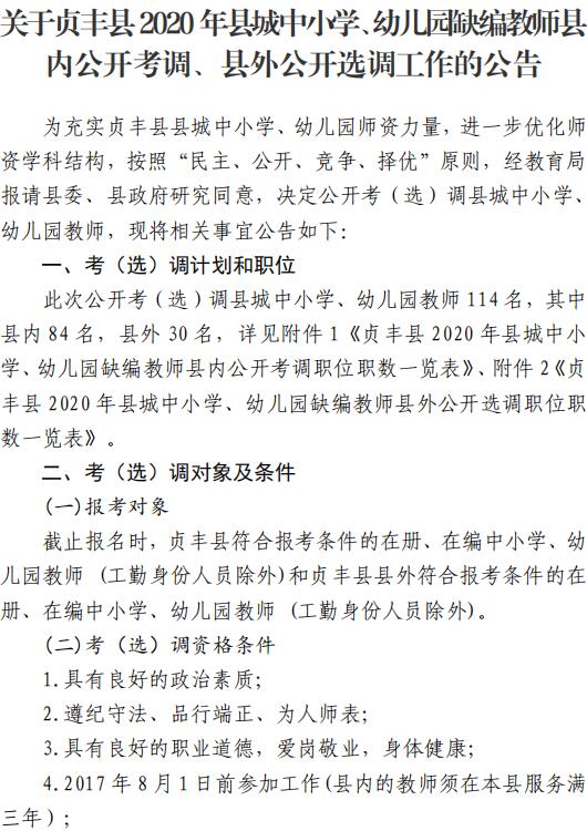 2020年黔西南貞豐縣縣城中小學、幼兒園缺編教師縣內公開考調、縣外公開選調工作公告