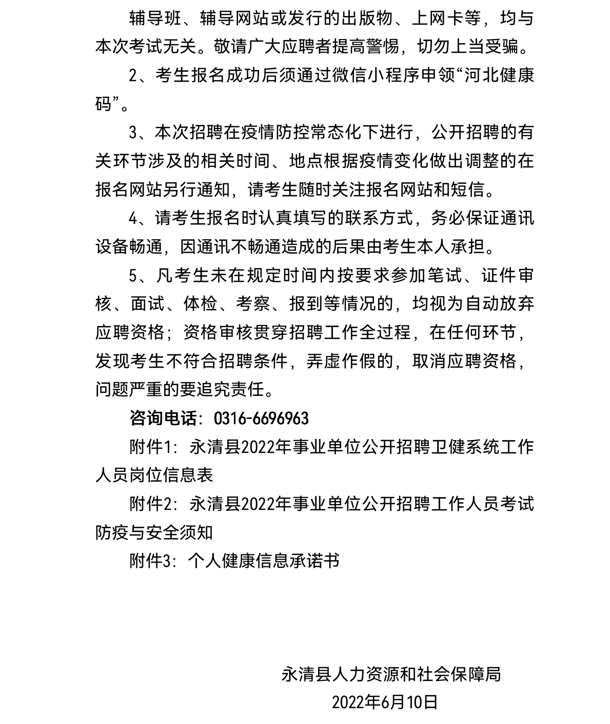 附件2:永清縣2022年事業(yè)單位公開招聘工作人員考試防疫與安全須知
