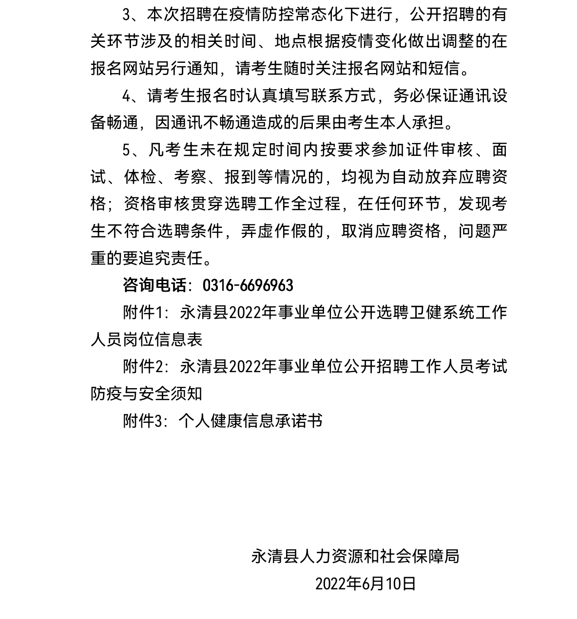 附件2:永清縣2022年事業(yè)單位公開招聘工作人員考試防疫與安全須知