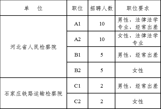 根據(jù)聘用制書記員職數(shù)核定情況,結(jié)合聘用制書記員隊伍梯次建設(shè)實際,河北省人民檢察院、石家莊鐵路運輸檢察院2023年度計劃招聘聘用制書記員34名,其中省院機(jī)關(guān)30名,石家莊鐵路運輸檢察院4名。具體職位如下: