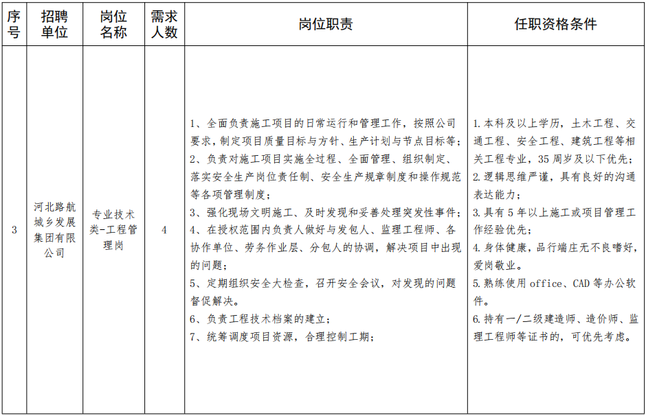 邢臺(tái)路橋建設(shè)集團(tuán)有限公司、河北路航實(shí)業(yè)集團(tuán)有限公司2家集團(tuán)所屬企業(yè)共招聘4崗30名工作人員。招聘崗位及相關(guān)要求詳見附件《邢臺(tái)市交通建設(shè)集團(tuán)有限公司2024年度社會(huì)招聘所屬企業(yè)崗位簡(jiǎn)要》