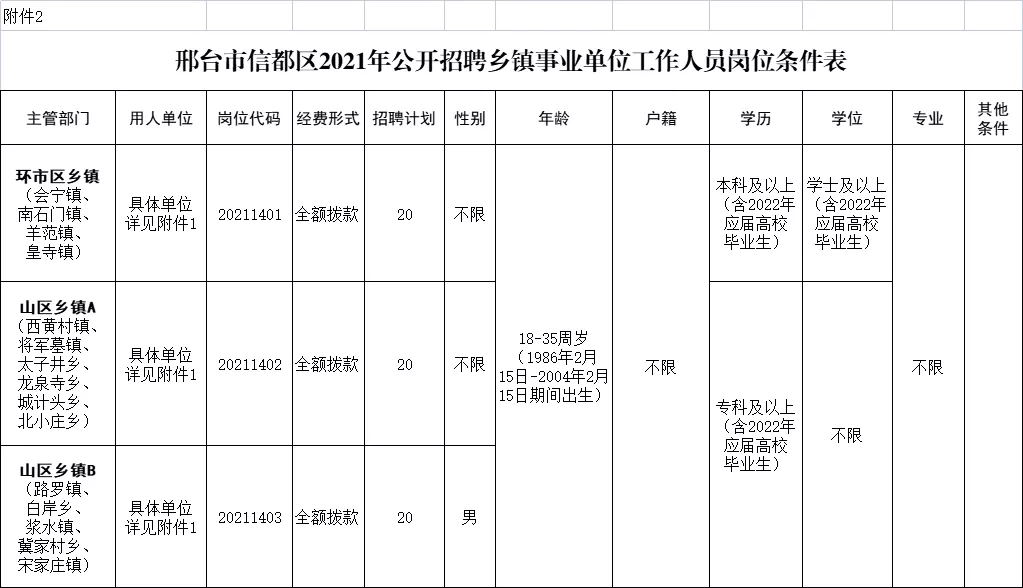 2.《邢臺(tái)市信都區(qū)2021年公開招聘鄉(xiāng)鎮(zhèn)事業(yè)單位工作人員崗位條件表》