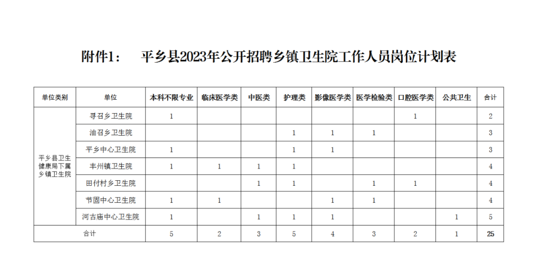 附件1:《平鄉(xiāng)縣2023年公開招聘鄉(xiāng)鎮(zhèn)衛(wèi)生院工作人員崗位計(jì)劃表》