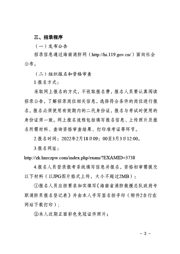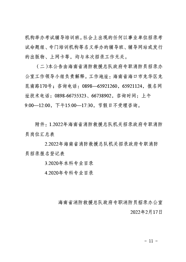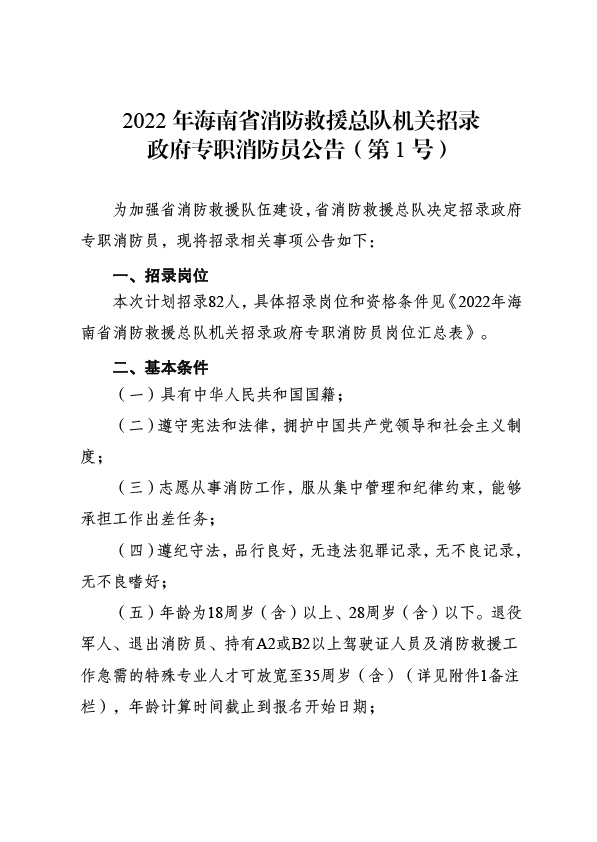 2022年海南省消防救援總隊(duì)機(jī)關(guān)招錄政府專職消防員公告(第1號(hào))