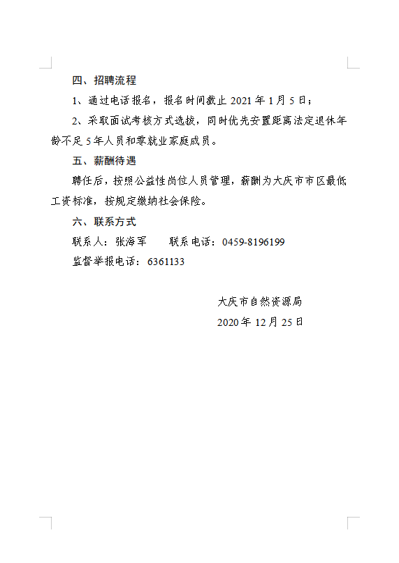 2020年大慶市自然資源局招聘公告