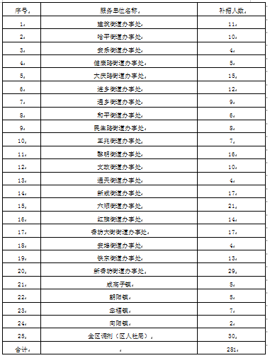 香坊區(qū)各街道辦事處、鎮(zhèn)勞動保障協(xié)理員補充招聘名額