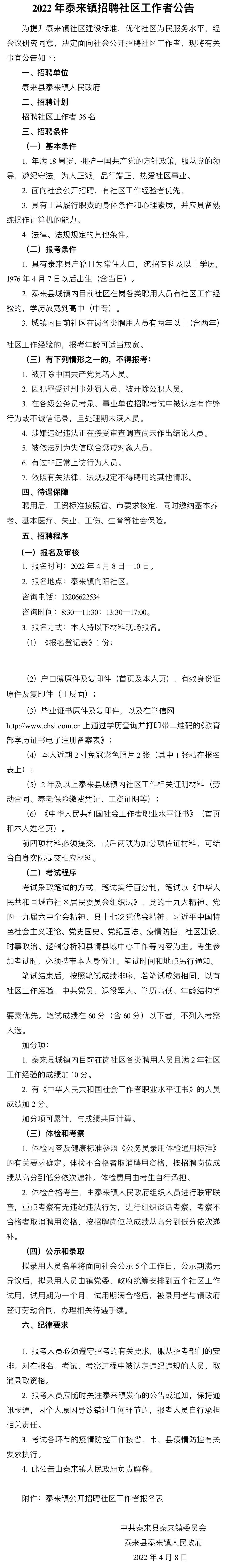 2022年齊齊哈爾泰來(lái)鎮(zhèn)招聘社區(qū)工作者公告