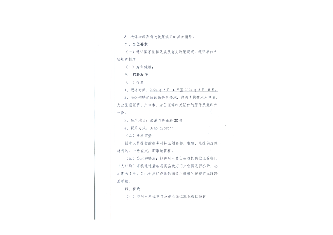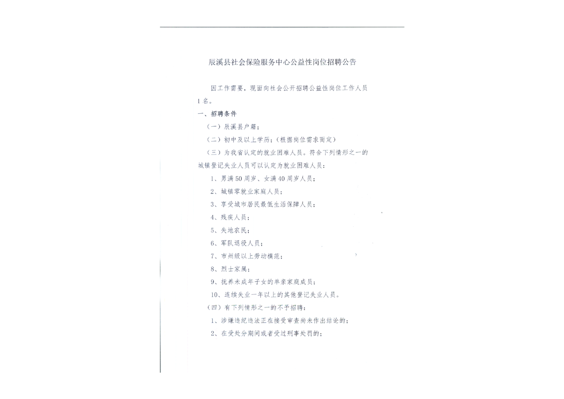 2024年懷化辰溪縣社會保險服務中心公益性崗位招聘公告