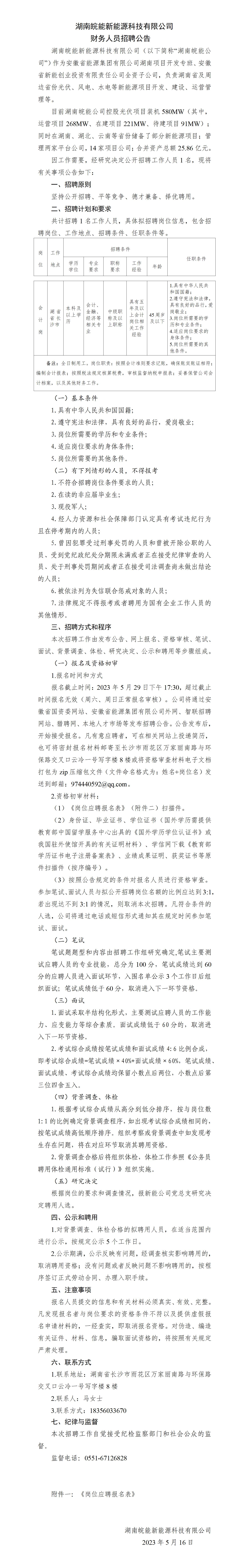 2023年湖南皖能新能源科技有限公司財務(wù)人員招聘公告