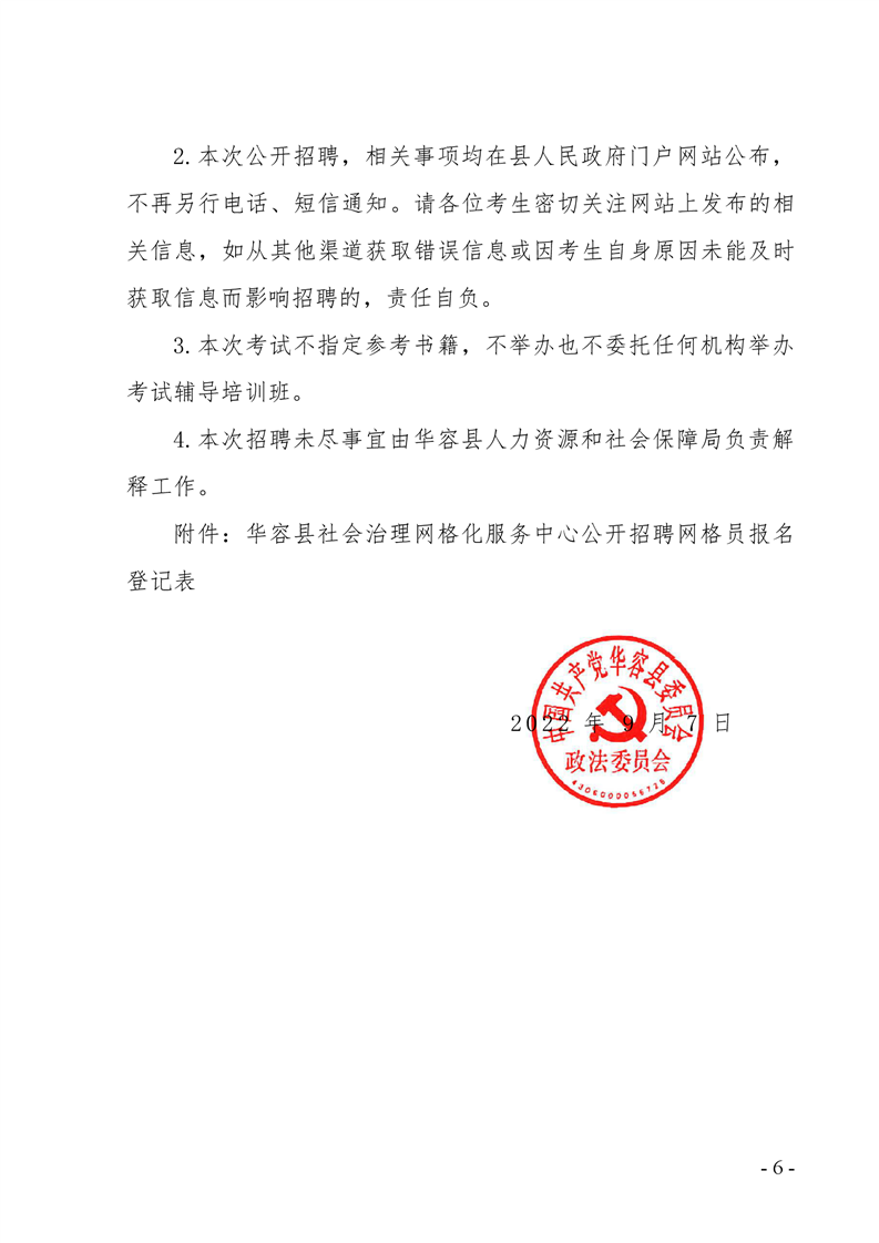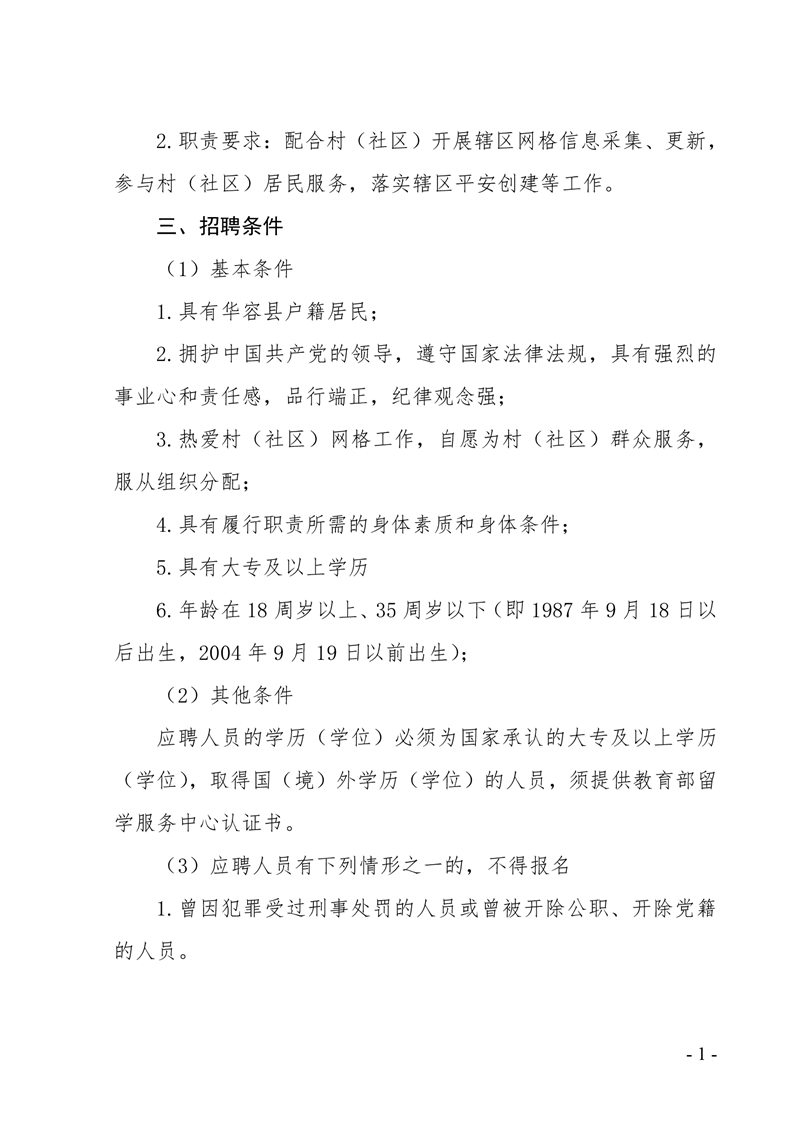 2022-09-14 11:19:19閱讀()華容縣人民政府根據《岳陽市城鄉(xiāng)村(社區(qū))網格化服務管理實施方案》(岳辦[2017]5號)文件精神,經報請縣委同意,縣委政法委書記辦公會議研究,決定面向社會公開招聘網格員,現(xiàn)將有關事項公告如下: