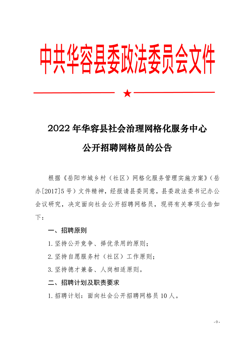 2022年岳陽華容縣社會治理網格化服務中心公開招聘網格員公告