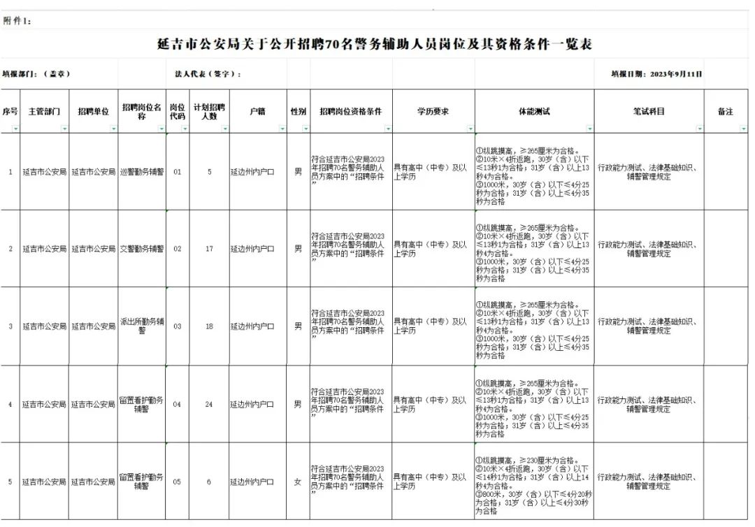 招聘崗位、人員數(shù)量及資格條件等見附件《延吉市公安局2023年招聘警務輔助人員崗位與資格條件一覽表》。