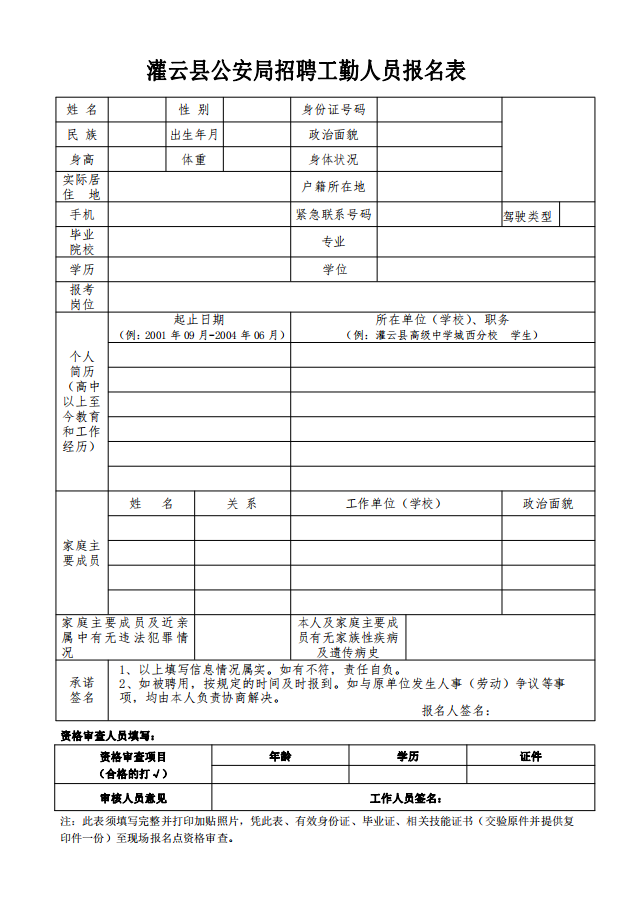 應聘人員須按照應聘崗位要求,真實、準確、完整和規(guī)范填寫報名表、報考誠信承諾書,連同應聘崗位所需有關證明材料電子版(可以是PDF、JPEG、JPG等形式),發(fā)送至郵箱:gygazp@126.com,郵件主題為:“應聘崗位代碼+姓名+聯(lián)系電話”。郵件接收成功后,將于48小時內回復資格初審意見,如未收到資格初審意見,請及時與灌云縣公安局聯(lián)系,聯(lián)系電話:0518-81868627。