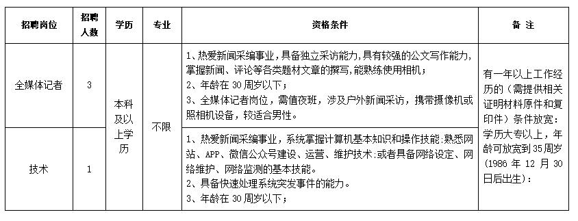 3、報名注意事項:采取現(xiàn)場報名方式。報名時須提供近期免冠同底版1寸正面彩色照片3張、本人身份證、畢業(yè)證書、學位證書、工作經(jīng)歷證明和其他相關證件原件、復印件及其他證明材料(如署名完成的新聞作品、美術設計作品、新媒體作品等)。填寫《鹽城市鹽都區(qū)融媒體中心2021年公開招聘工作人員報名表》(見附件)一式兩份。在規(guī)定時間內(nèi),如本人現(xiàn)場報名有困難的,可委托他人代為報名,代報名人須提供本人身份證及報考者需提供的報名材料。