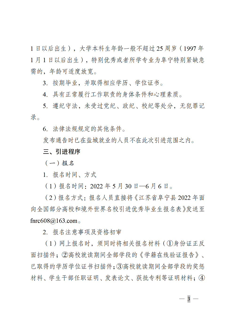 2022年鹽城阜寧縣面向全國(guó)部分高校和境外世界名校引進(jìn)優(yōu)秀畢業(yè)生(第四批)工作通告