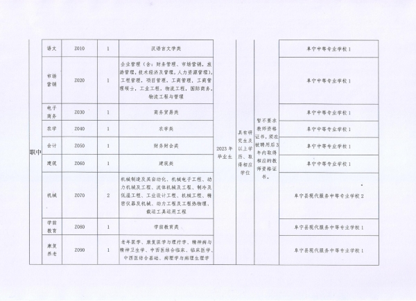 4.應(yīng)聘人員本科或研究生階段所學(xué)專(zhuān)業(yè)須符合招聘崗位的專(zhuān)業(yè)要求(專(zhuān)業(yè)目錄按江蘇省2023年度考試錄用公務(wù)員專(zhuān)業(yè)參考目錄、教育部《普通高等學(xué)校本科專(zhuān)業(yè)目錄(2020年版)》和《授予博士、碩士學(xué)位和培養(yǎng)研究生的學(xué)科、專(zhuān)業(yè)目錄(1998年版)》等執(zhí)行)。并具有相應(yīng)教師資格證書(shū),或持有已參加相應(yīng)教師資格認(rèn)定的證明。報(bào)考職中專(zhuān)業(yè)課教師崗位的,暫不要求教師資格證書(shū),須在被聘用后3年內(nèi)取得相應(yīng)的教師資格證書(shū);
