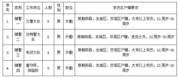 2022年朝陽縣公安局招考輔警公告