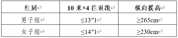 同時,資格審查合格人員參加體能測試,體能測試標準為:
