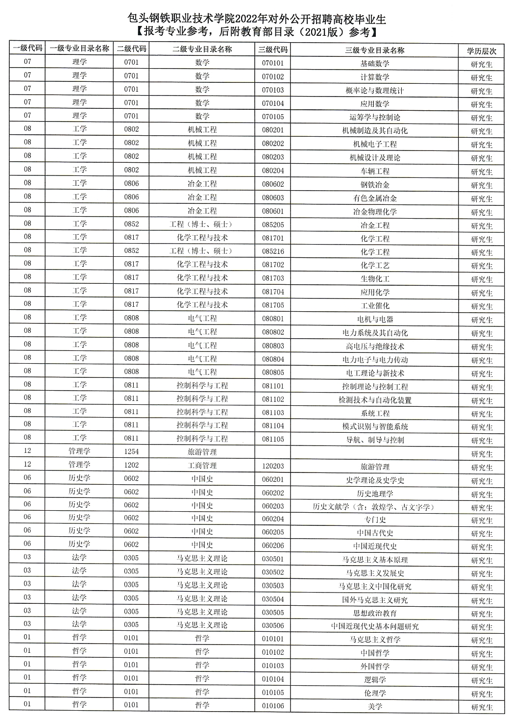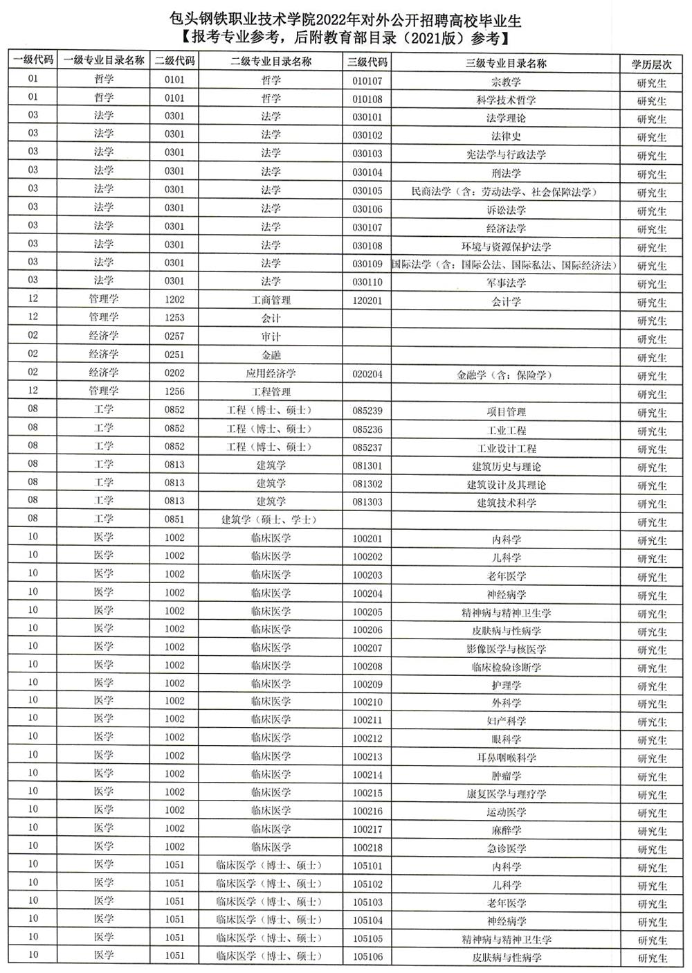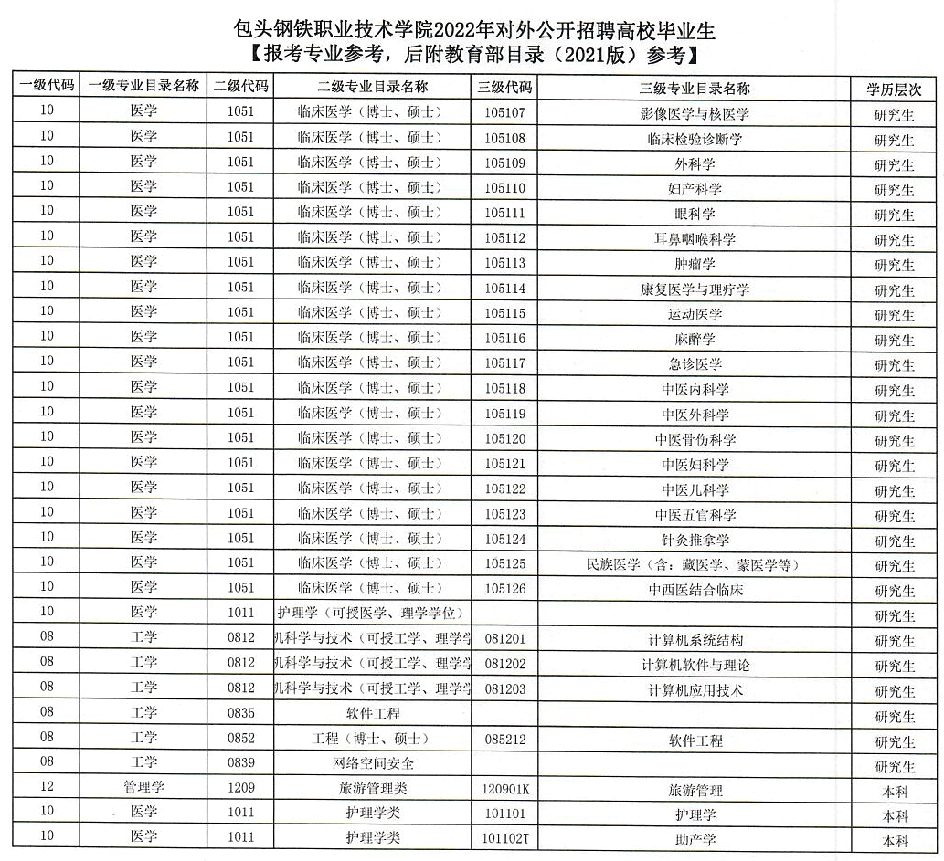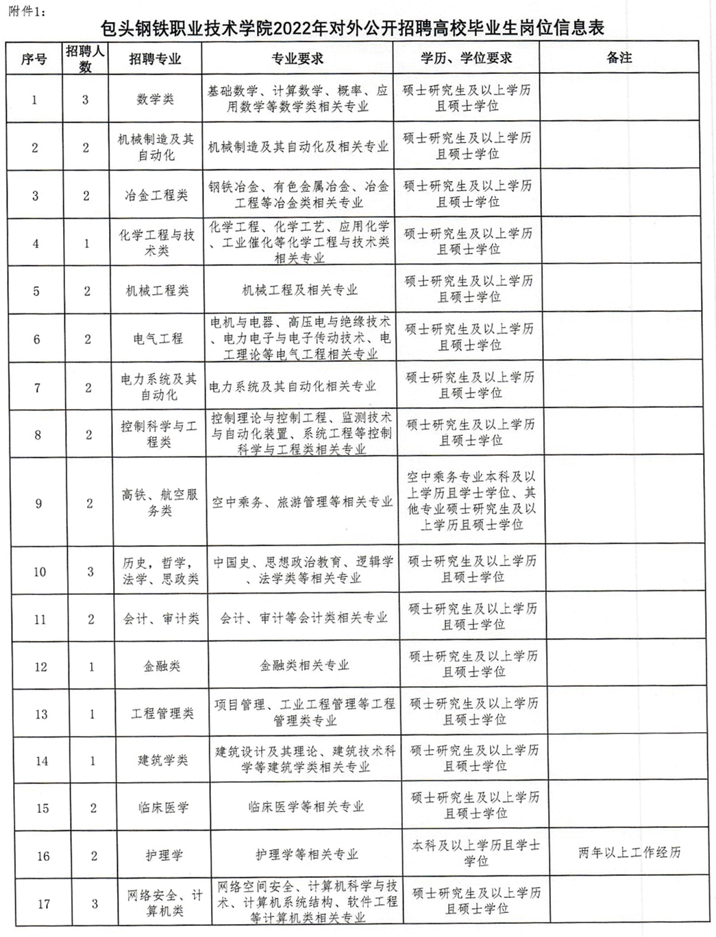 1.包頭鋼鐵職業(yè)技術(shù)學(xué)院2022年對外公開招聘高校畢業(yè)生崗位信息表