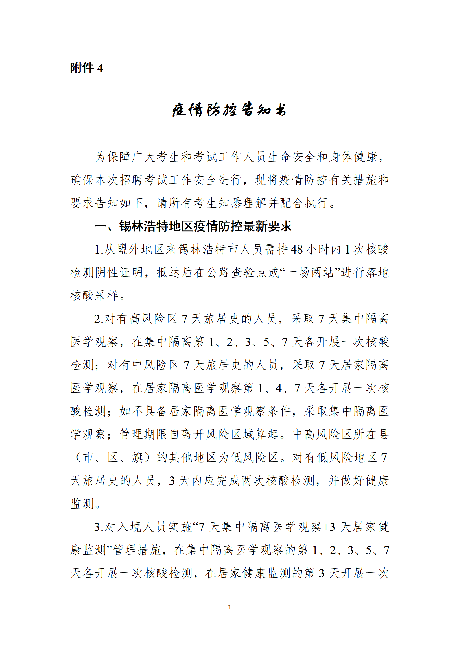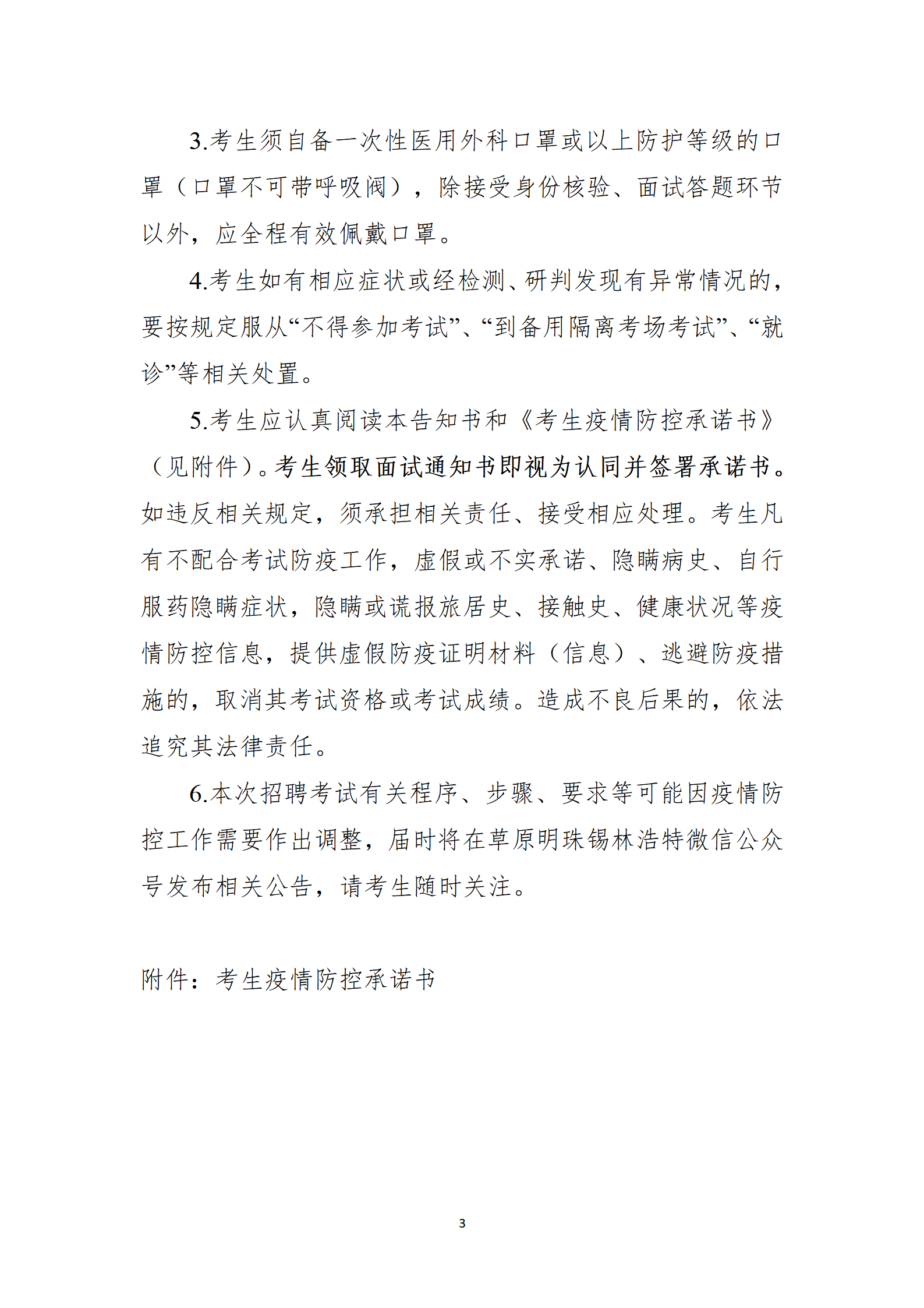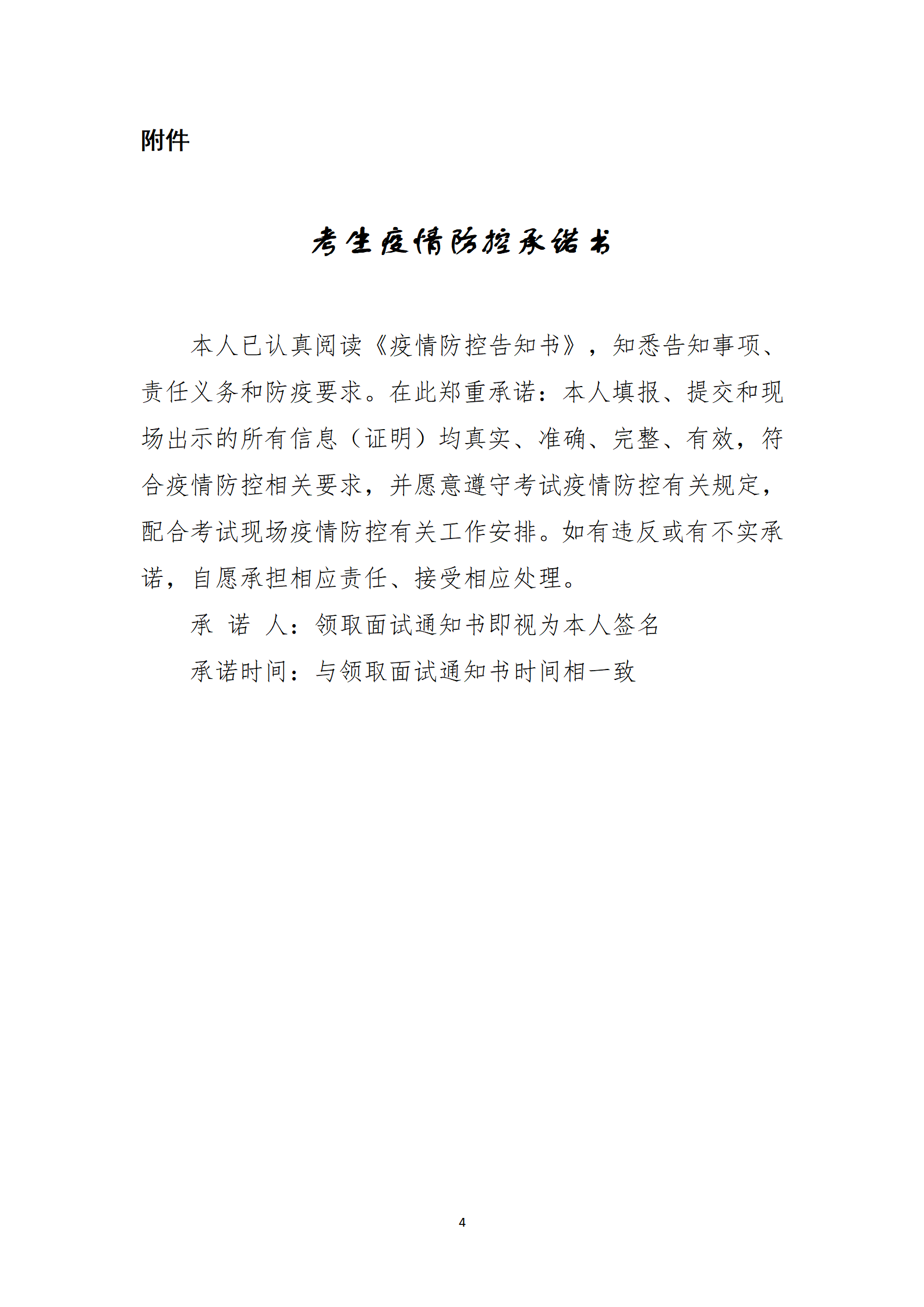 本次招聘考試考試嚴格執(zhí)行《疫情防控告知書》(附件4),并簽訂《考生疫情防控承諾書》。如有違反或有不實承諾,由報考人員承擔(dān)相應(yīng)責(zé)任、接受相應(yīng)處理。