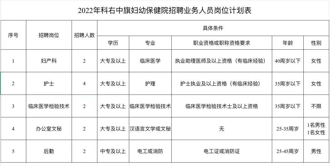2022年興安盟科右中旗婦幼保健院公開(kāi)招聘專(zhuān)業(yè)技術(shù)人員公告