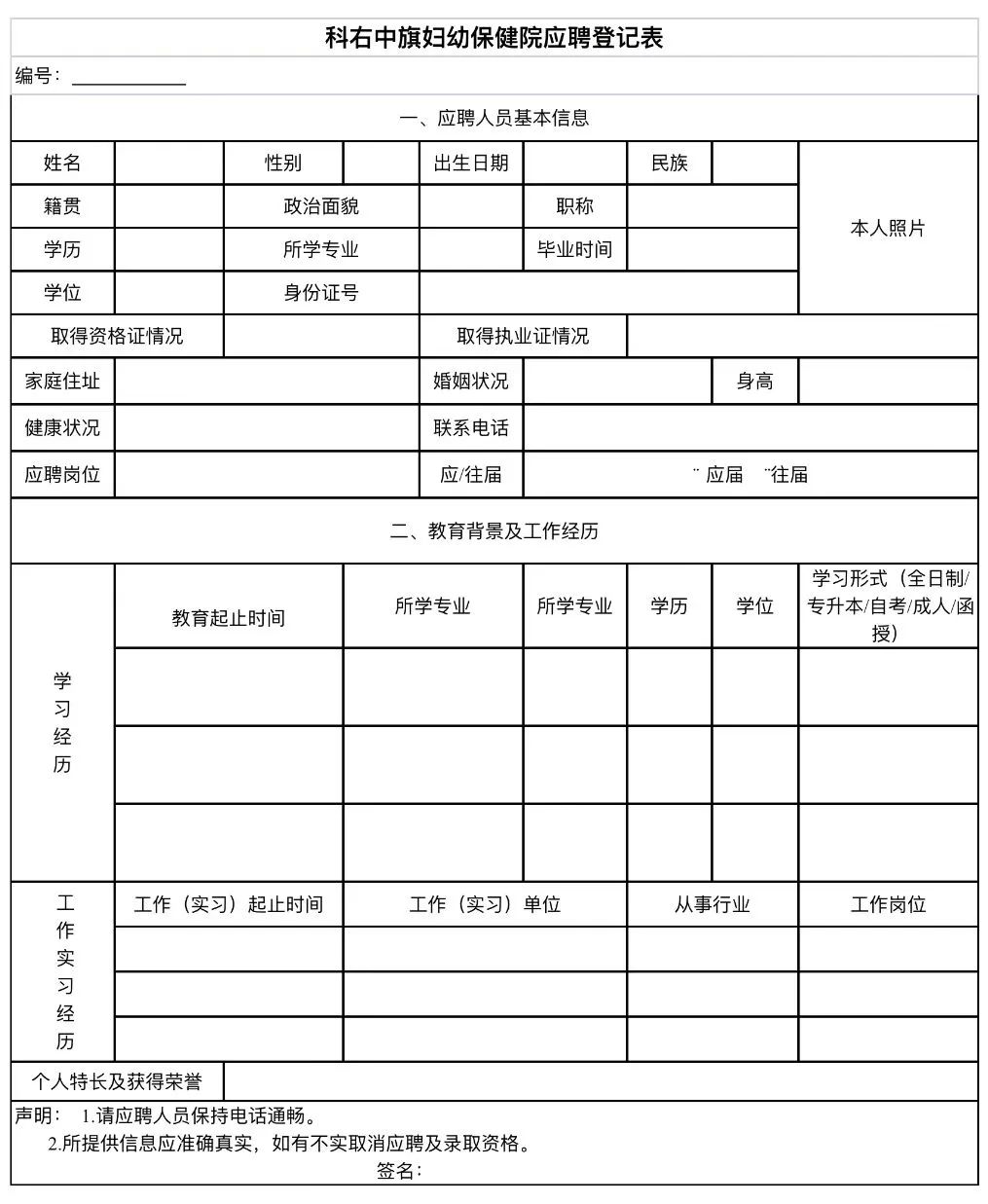 1.報(bào)名工作采取現(xiàn)場(chǎng)方式進(jìn)行,現(xiàn)場(chǎng)報(bào)名地址興安盟科右中旗婦幼保健院人事科。聯(lián)系電話:0482-4122936