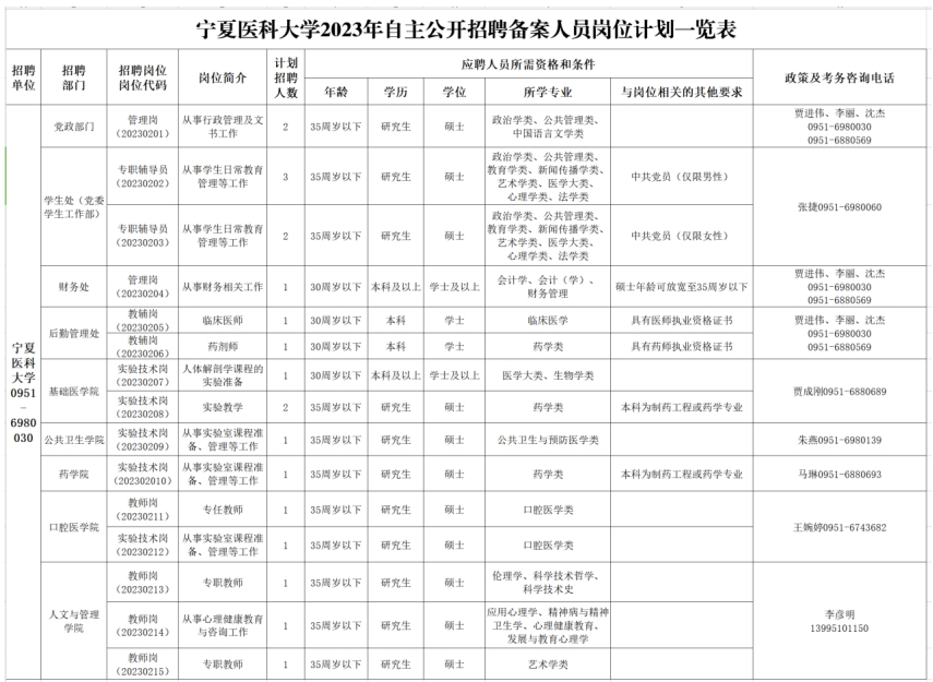 附件:寧夏醫(yī)科大學(xué)2023年自主公開(kāi)招聘?jìng)浒溉藛T崗位計(jì)劃一覽表