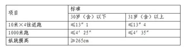 2.體能測(cè)評(píng)內(nèi)容:參照《公安機(jī)關(guān)錄用人民警察體能測(cè)評(píng)實(shí)施規(guī)則》組織實(shí)施,具體內(nèi)容為10米×4往返跑(測(cè)評(píng)次數(shù)不超過(guò)2次)、男子1000米跑(測(cè)評(píng)次數(shù)為1次)、縱跳摸高(測(cè)評(píng)次數(shù)不超過(guò)3次)。