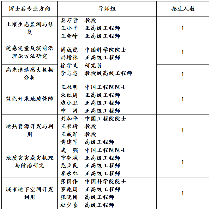 2021-10-22 20:29:00閱讀()陜西省地質(zhì)調(diào)查院陜西省地質(zhì)調(diào)查院為省政府直屬公益一類事業(yè)單位,主要承擔(dān)全省公益性、基礎(chǔ)性、戰(zhàn)略性地質(zhì)調(diào)查工作。2018年,經(jīng)人力資源和社會(huì)保障部、全國(guó)博士后管理委員會(huì)批準(zhǔn),陜西省地質(zhì)調(diào)查院設(shè)立博士后科研工作站,現(xiàn)面向海內(nèi)外公開招收優(yōu)秀博士后研究人員,歡迎海內(nèi)外獲得博士學(xué)位,品學(xué)兼優(yōu)、身體健康的優(yōu)秀人才加入。現(xiàn)將有關(guān)事項(xiàng)公告如下: