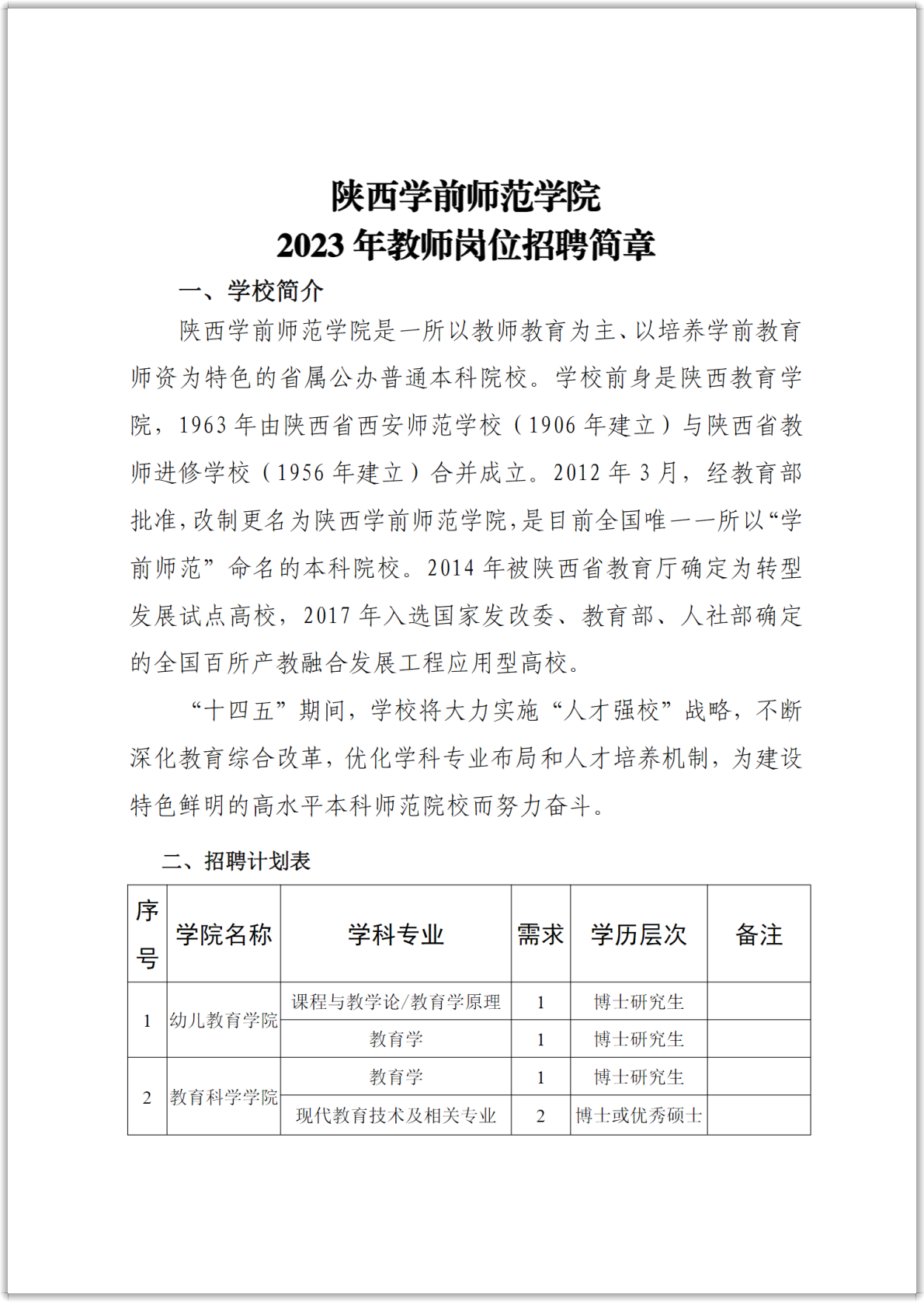 2023年陜西學(xué)前師范學(xué)院教師崗位招聘簡章