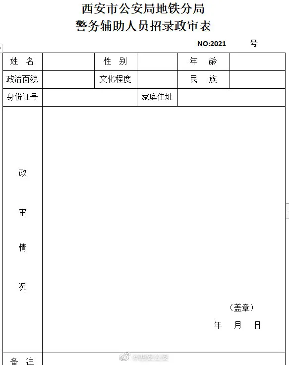 2021年西安市公安局地鐵分局面向社會(huì)公開招聘警務(wù)輔助人員公告