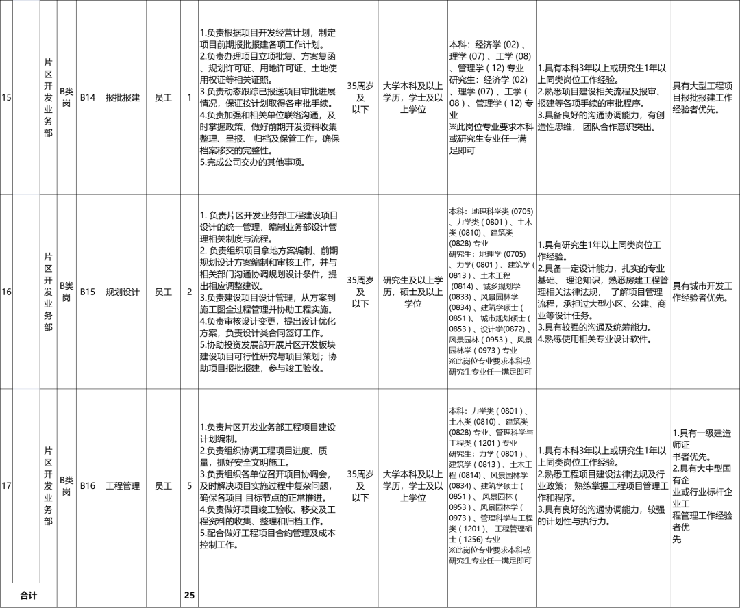 本次招聘共涉及西咸城鄉(xiāng)集團本級及子公司17個崗位共計25名人員。具體崗位職責及崗位任職條件詳見《西咸城鄉(xiāng)集團2023年社會公開招聘需求一覽表》。