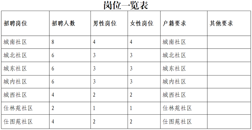 專(zhuān)職網(wǎng)格員共招聘36名,男性18名,女性18名。崗位設(shè)置詳見(jiàn)附表。