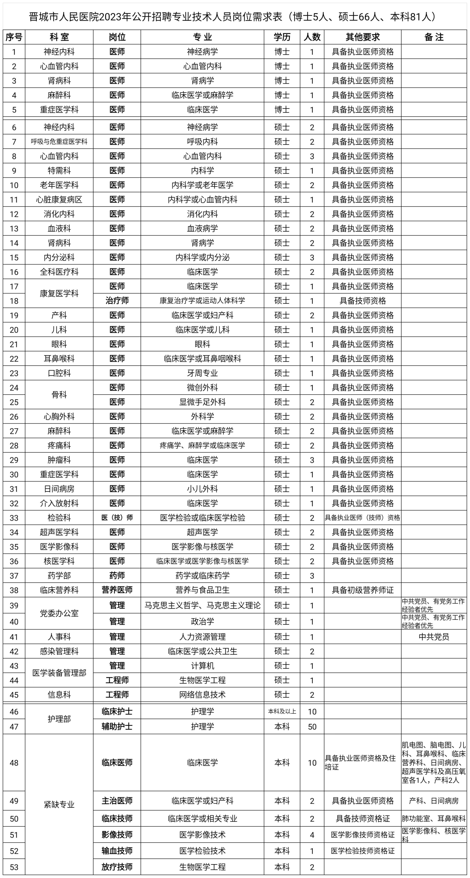 2023年晉城市人民醫(yī)院公開招聘專業(yè)技術人員公告
