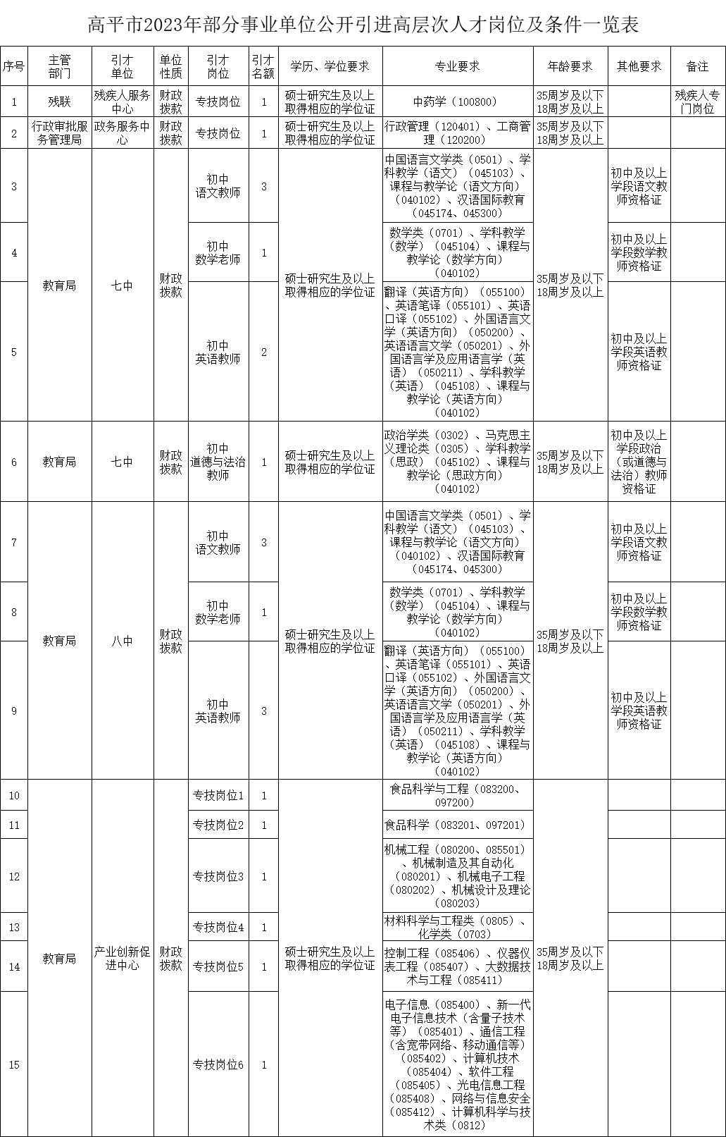 附件:《高平市2023年部分事業(yè)單位公開引進(jìn)高層次人才崗位及條件一覽表》