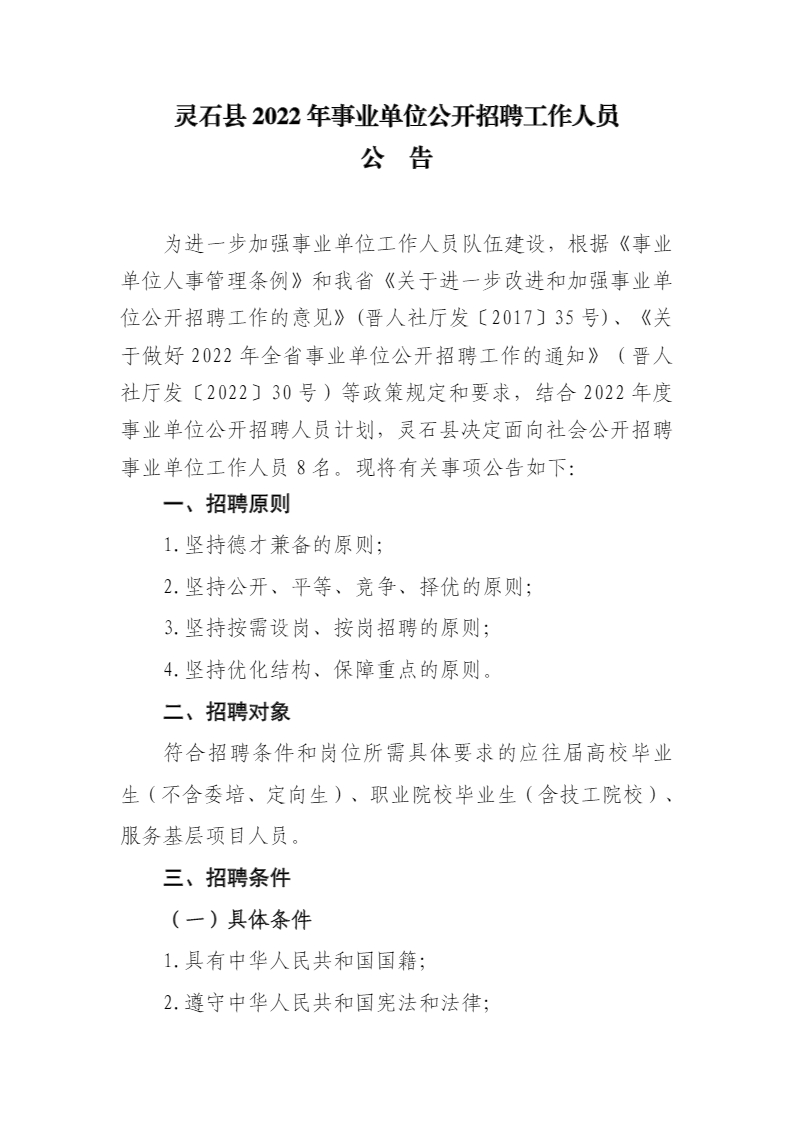 2022年晉中靈石縣事業(yè)單位公開(kāi)招聘工作人員公告