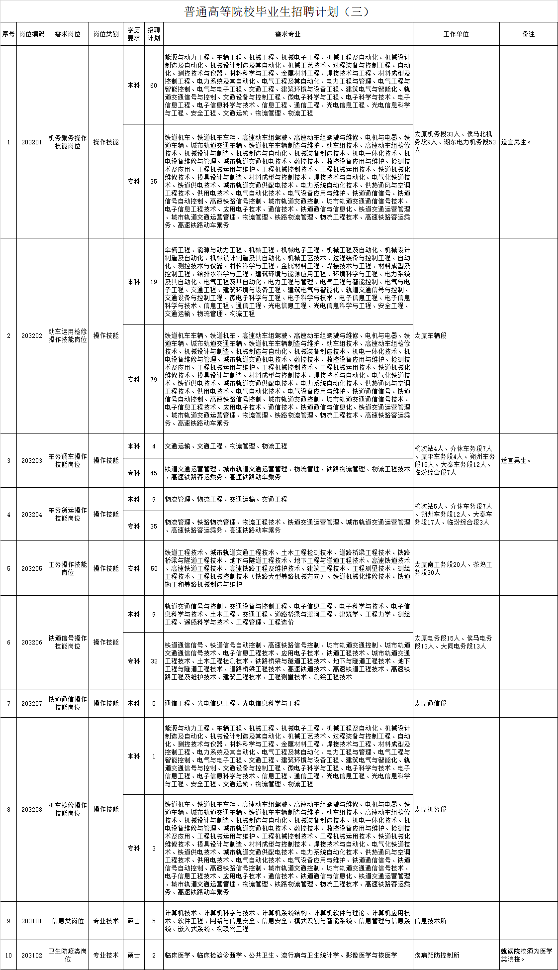 2020年中國鐵路太原局集團有限公司高校畢業(yè)生招聘公告(三)