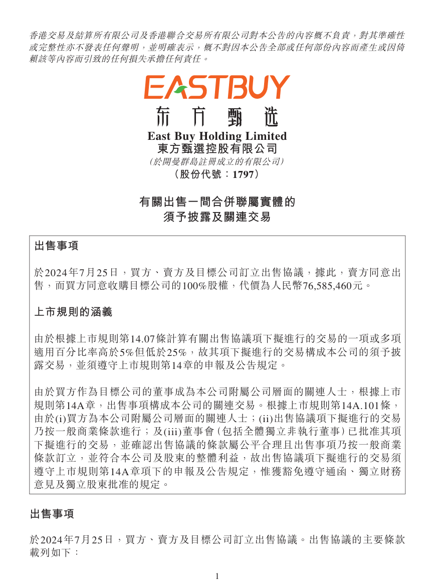 董宇輝(買方)、北京新東方迅程網(wǎng)絡(luò)科技有限公司(賣方)及與輝同行(北京)科技有限公司(目標(biāo)公司)訂立出售協(xié)議,據(jù)此,賣方同意出售,而買方同意收購(gòu)目標(biāo)公司的100%股權(quán),代價(jià)為人民幣7658.55萬元。