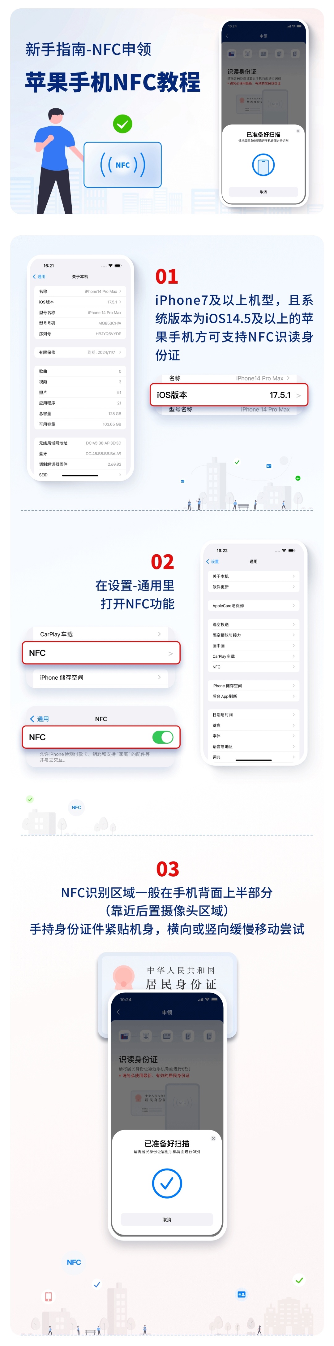 申領(lǐng)網(wǎng)證需要一部有 NFC 功能的手機(iOS或安卓),進行證件NFC識別和人臉識別,然后關(guān)聯(lián)手機號、設(shè)置8位數(shù)字口令,即可申領(lǐng)成功。