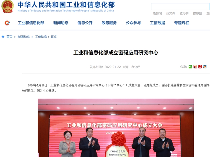 工信部成立密碼應用研究中心