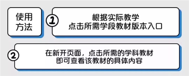 ①:根據(jù)實際教學,點擊所需學段教材版本入口;
