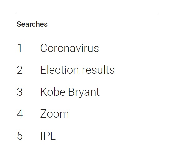 您的位置:首頁 / 行業(yè)資訊 / 谷歌發(fā)布2020年度熱搜榜:新冠病毒搜索量第一