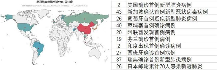 以關(guān)注度最高的日本為例,前期因?yàn)橄蛑袊栀?zèng)10萬套防護(hù)服和其他物資而上熱搜,后期則因?yàn)?ldquo;鉆石公主”號(hào)郵輪出現(xiàn)聚集性感染而受到廣泛關(guān)注。