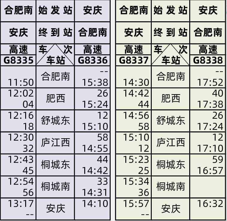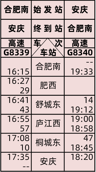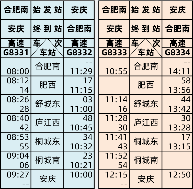 據(jù)介紹,京港高鐵合安段開通運營過渡期,鐵路部門將安排每日開行動車組列車5對,具體為:合肥南~安慶G8331/8332、G8333/8334、G8335/8336、G8337/8338、G8339/8340次,具體開行日期以車站公告為準。