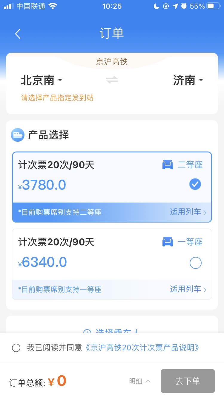 另外京滬高鐵沿線的一些區(qū)間站也可以購買,比如北京南站到濟(jì)南站,二等座計次票 20 次 / 90 天售價 3780 元,平均每次票價為 189 元;一等座計次票 20 次 / 90 天售價 6340 元,平均每次票價為 317 元。